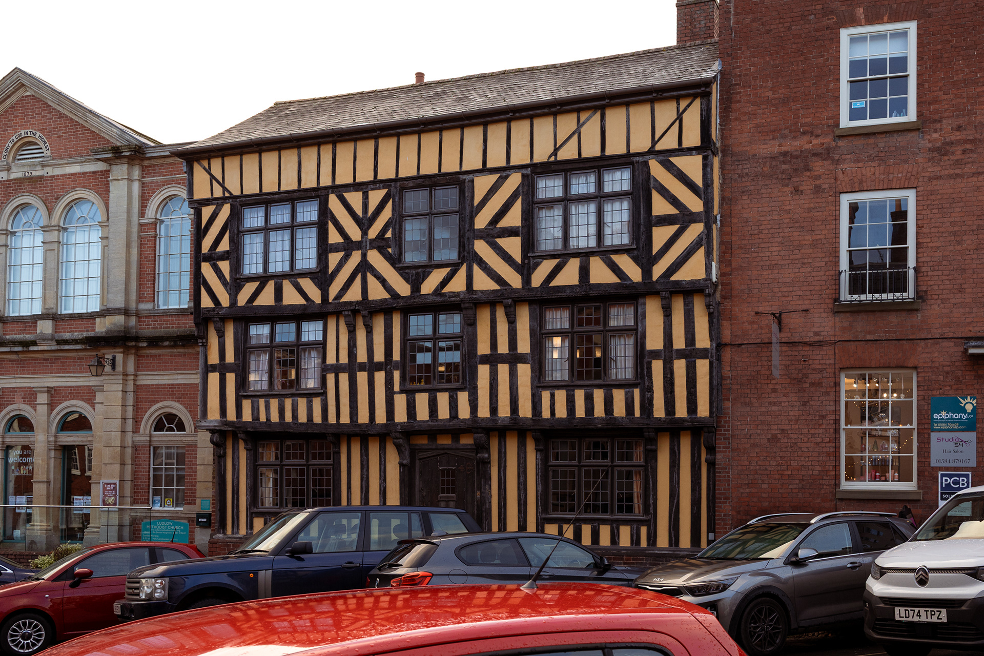Narrow streets an old buildings define Ledbury's character.