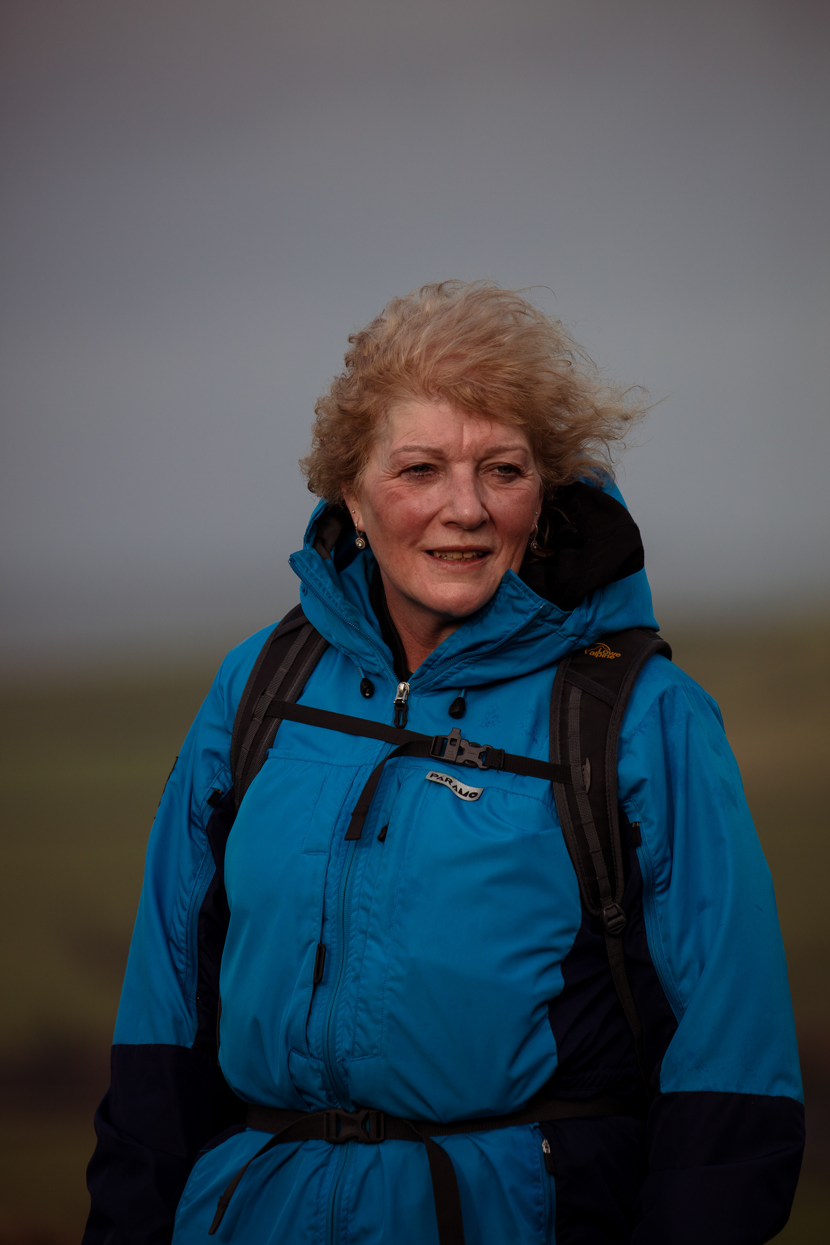 Deb trying not to get blown off the top of Caer Caradoc
